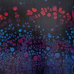 Dominantes Schwarz, durchdrungen von leuchtenden Zellen in Magenta, Violett, Karminrot und Hellblau.